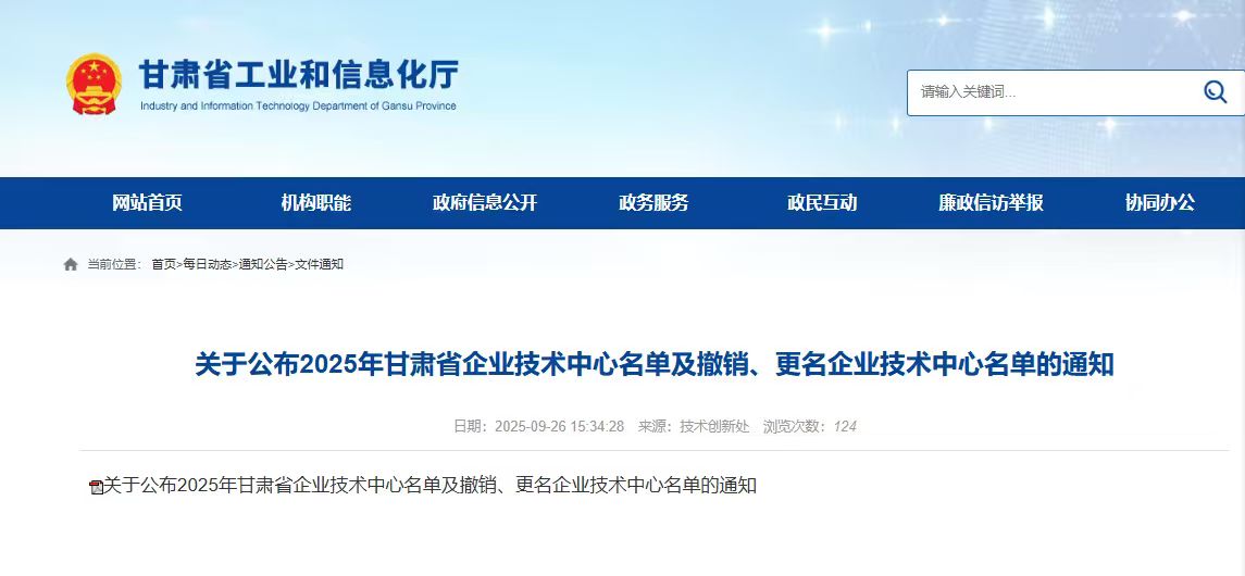 近日,甘肅省工業(yè)和信息化廳發(fā)布《關(guān)于公布2025年甘肅省企業(yè)技術(shù)中心名單及撤銷、更名企業(yè)技術(shù)中心名單的通知》。我公司被甘肅省工業(yè)和信息化廳、甘肅省發(fā)展和改革委員會(huì)、甘肅省科學(xué)技術(shù)廳、甘肅省財(cái)政廳、國(guó)家稅務(wù)總局甘肅省稅務(wù)局聯(lián)合認(rèn)定為2025年甘肅省企業(yè)技術(shù)中心。這一認(rèn)定標(biāo)志著我公司在技術(shù)創(chuàng)新體系建設(shè)、核心技術(shù)研發(fā)及成果轉(zhuǎn)化能力等方面獲得省級(jí)權(quán)威認(rèn)可,躋身全省同行業(yè)技術(shù)創(chuàng)新先進(jìn)行列。